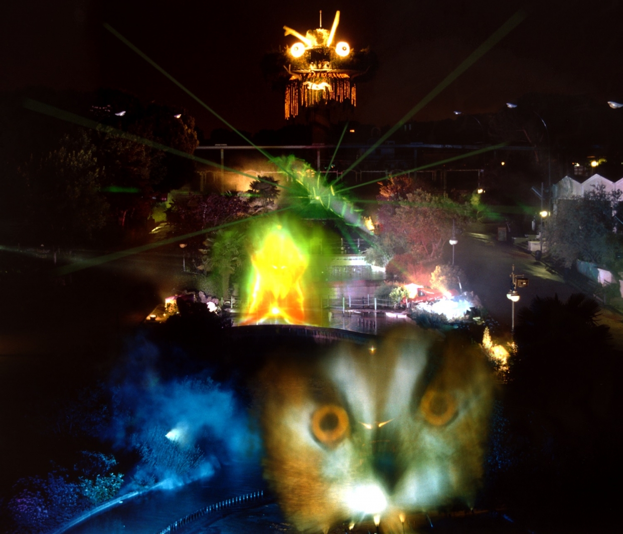 Espectáculo multimedia con proyección sobre 3 pantallas de agua, láser, elementos hinchables y escénicos, pirotecnia, iluminación escénica, efectos especiales y música. El rodaje, diseñado específicamente para pantalla de agua, fue realizado en plató con actores y bailarines.